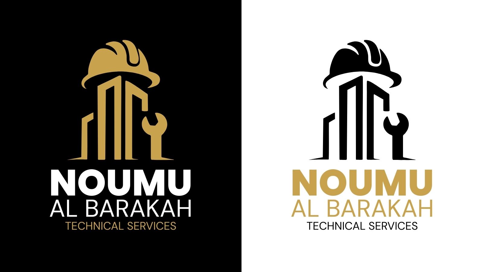 The final logo is a strong, confident representation of Noumu Al Barakah Technical Services. It clearly communicates construction, maintenance, and reliability at first glance. Most importantly, the client was proud of the result and confident using it across his business.